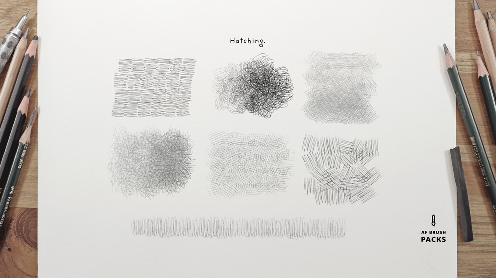• Hatching, scribble, and organic shading brushes